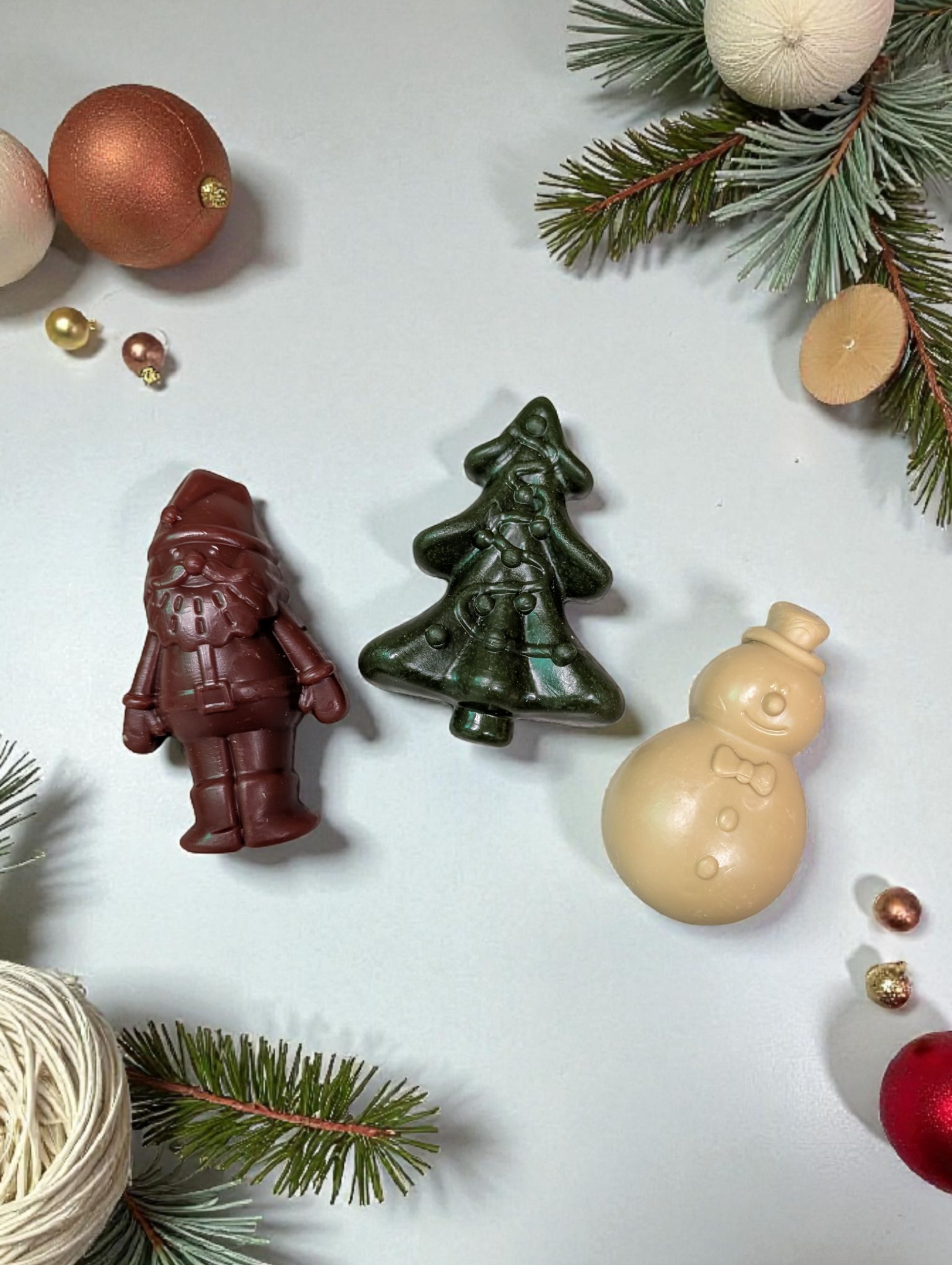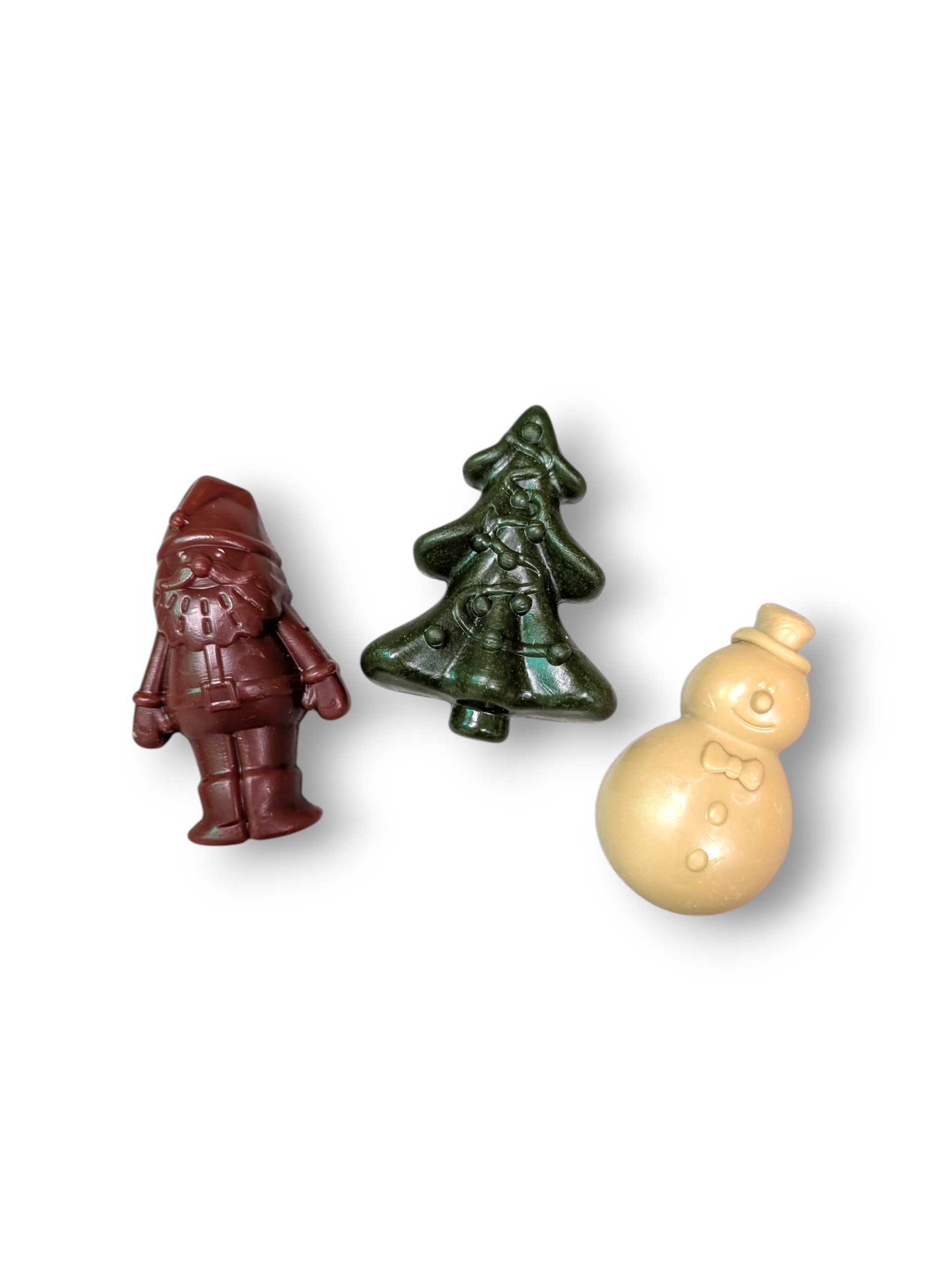 Bring festive magic to your dog's holiday season with this merry trio of Santa, Snowman, and Christmas Tree-shaped dental treats.