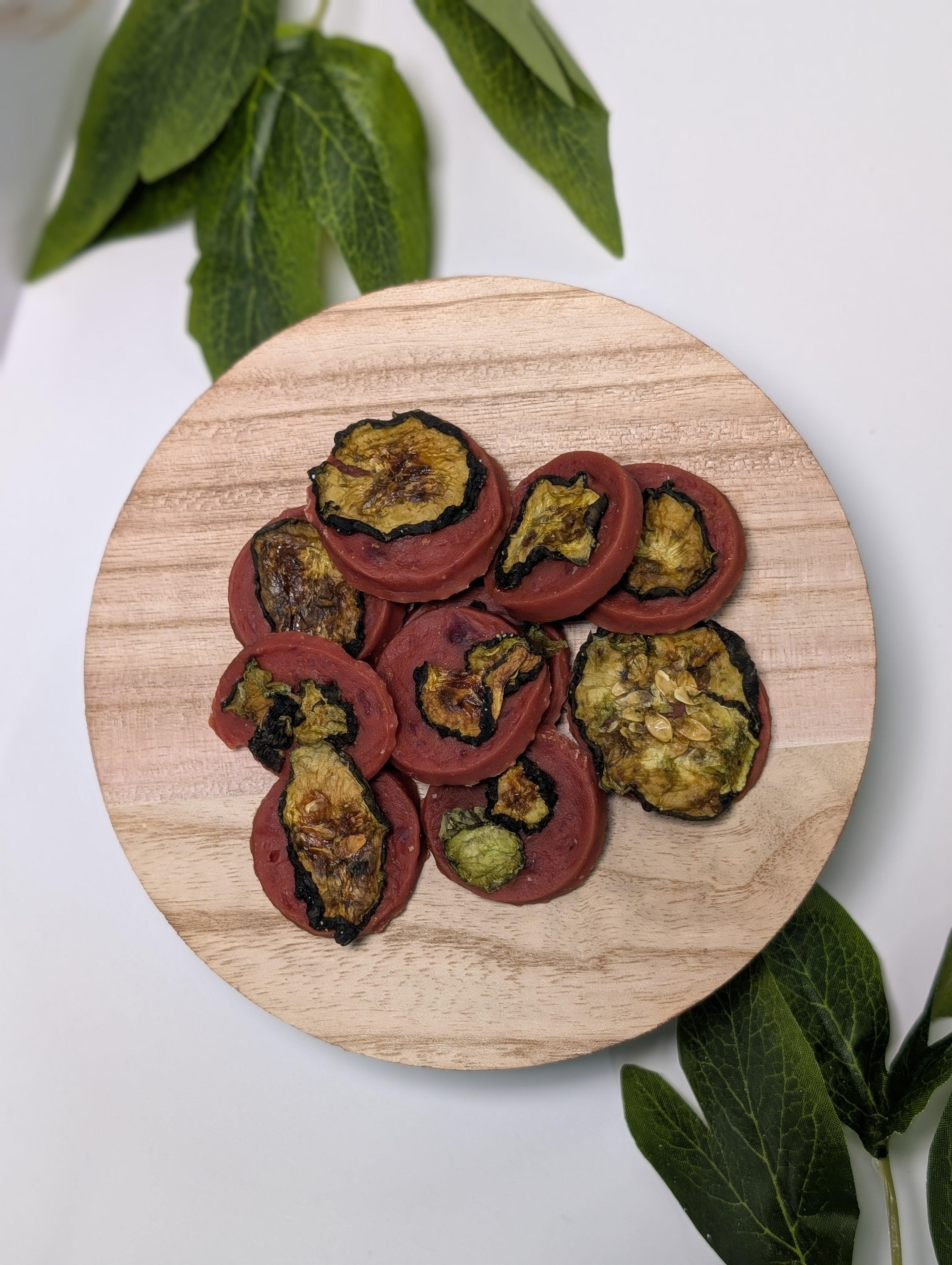 Treat your canine companion to a taste sensation that marries rich game with garden freshness. These unique chips are crafted with a generous 76% premium duck, offering that irresistible meaty depth dogs crave, paired with 10% real cucumber for a surprising and wholesome twist.