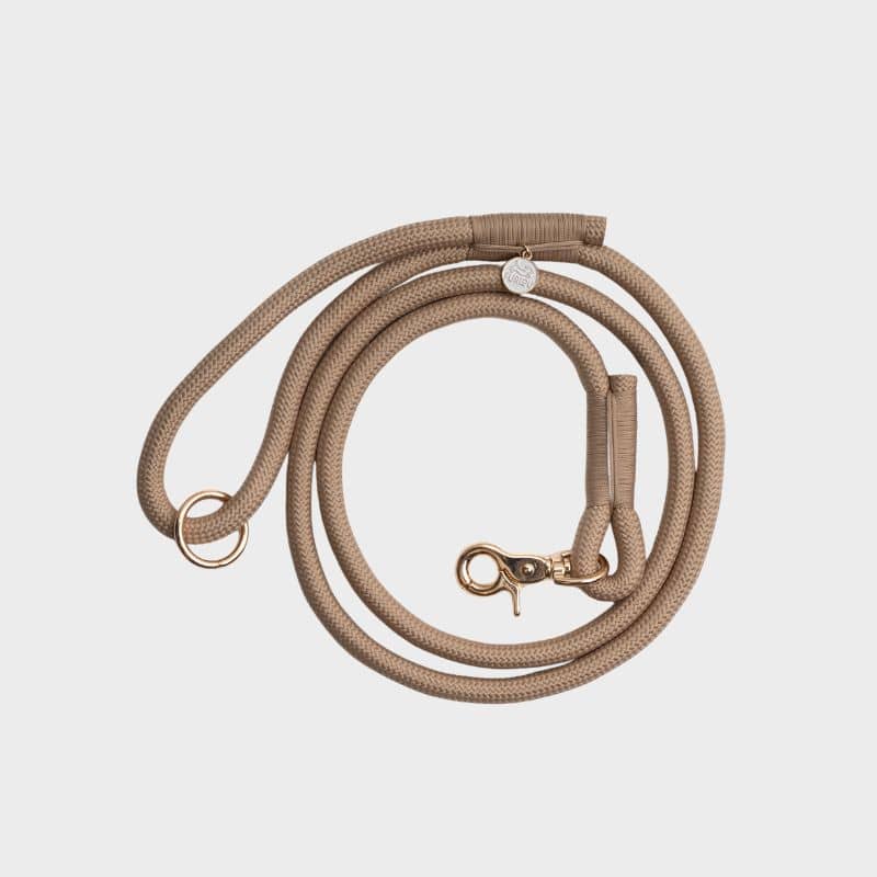 Waterproof rope that’s easy to clean with reinforced splice for extra strength and luxe zinc alloy light gold hardware.