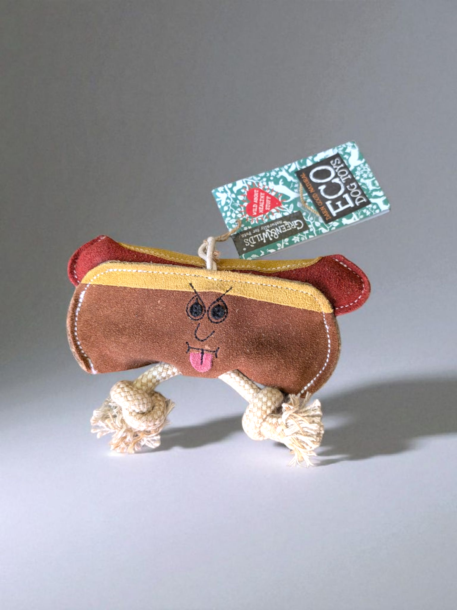 Made from a suede outer with natural jute fibre stuffing and jute rope legs, this cheeky chap is Harry the Hotdog!