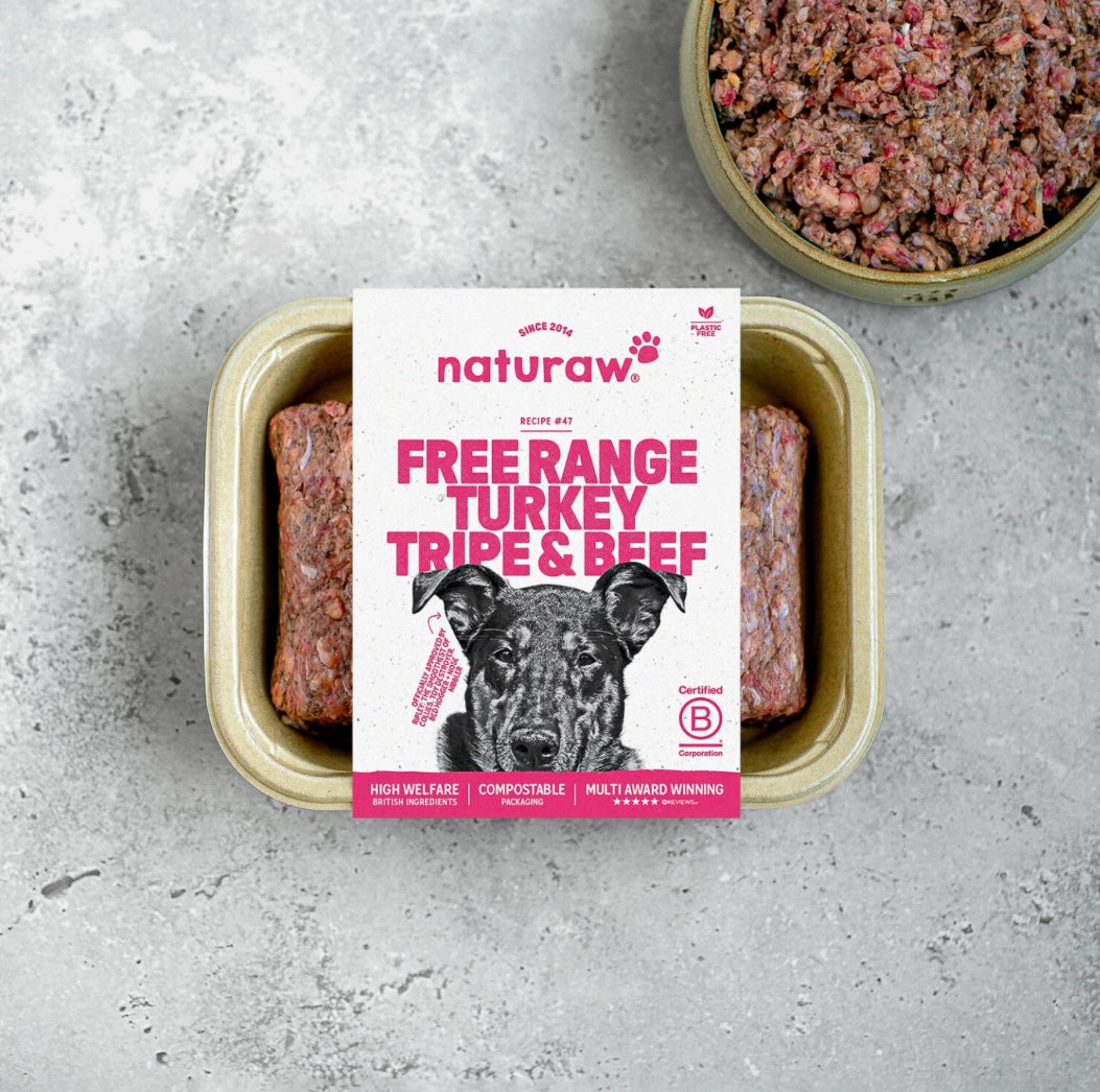 Naturaw's high quality British meat, including free range turkey tripe and beef, make this raw dog food a nutritious and wholesome option for your furry friend. Made with natural ingredients, it provides essential nutrients for optimal health and vitality. Give your dog the best with Naturaw.