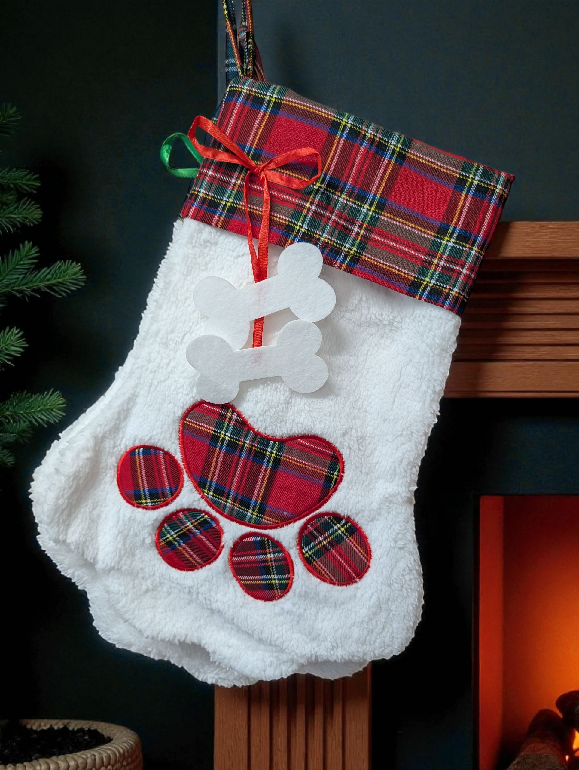 Tartan Paw-Shaped Christmas Stocking